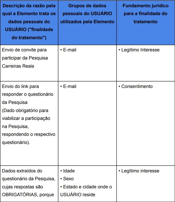 da Pesquisa Carreira Reais (“Pesquisa”), idealizada e desenvolvida pela Elemento