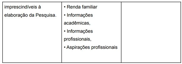 Pesquisa, após coletados, serão tratados de forma anonimizada e armazenados