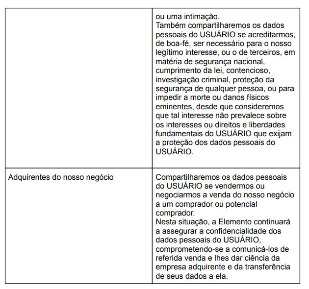 Se quiser saber mais sobre a presente Política e como a Elemento utiliza os dados